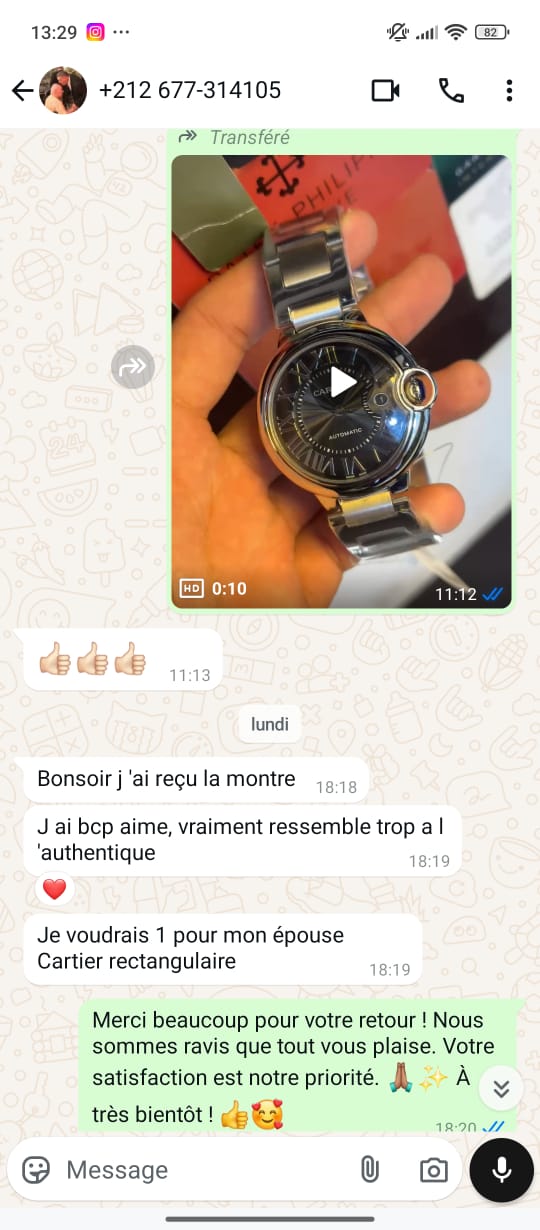 Des montres style inspiré en qualité premium : acier soigné, verres durcis, bracelets confort. Chaque pièce est contrôlée, avec un service local réactif.
