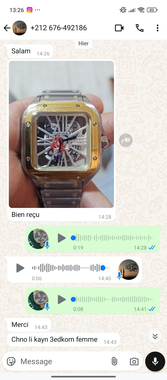 Votre destination au Maroc pour des montres au style iconique. Finitions soignées, prix maîtrisés, livraison 24–72 h et paiement à la livraison. Explorez notre sélection et trouvez la pièce qui vous ressemble.